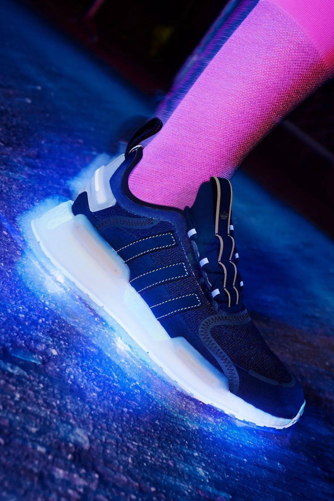 其中,以白色为主色调打造鞋身的 NMD_V3,采用抢眼的粉色点缀中底 Plug 色块。 颜色与鞋带拉片的细节相呼应,明亮的荧光色增添了整双球鞋的视觉观感。 效果相当丰富多彩; 另一款NMD_V3则侧重于橙色和黑色的组合。 贯穿鞋面的黑色立体缝线与橙色鞋面形成强烈的色彩对比,与夜晚城市街道的霓虹灯相得益彰。